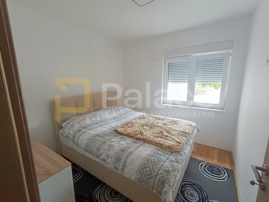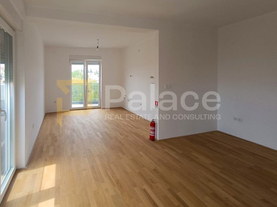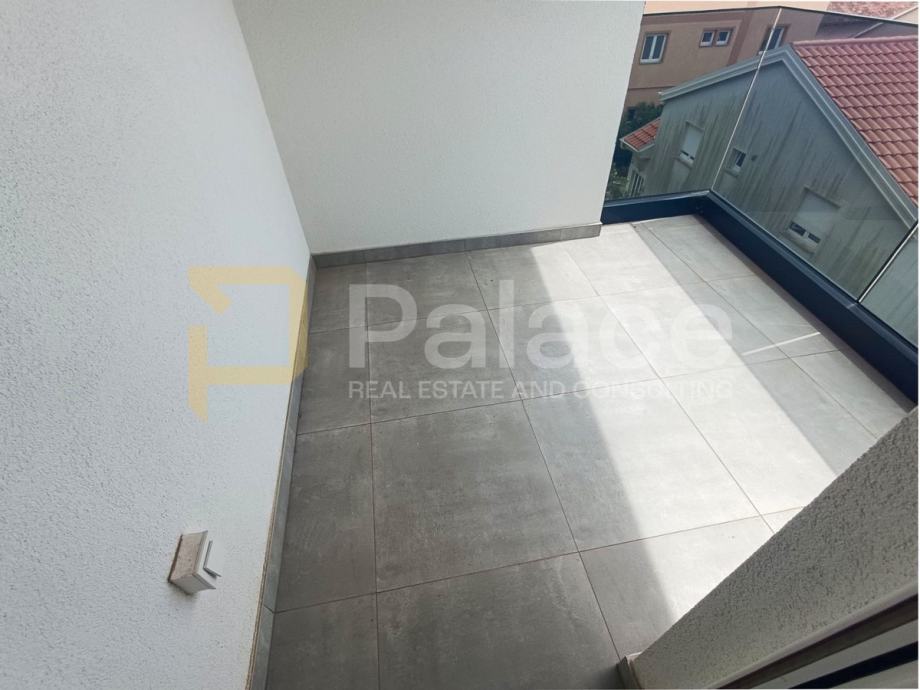 Prodaje se stan S5 na drugom katu zgrade sa 6 stanova. Sveukupna površina stana je 80,42 m2, a sastoji se od hodnika, open space dnevnog boravka, kuhinje i blagovaonice, bračne sobe, dječje sobe, kupaonice s WC-om, zasebnog WC-a, lođe, balkona i krovne terase. Uz stan dolaze i dva parkirna mjesta.