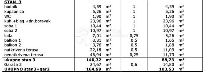 STAN S3 - PRVI KAT - KROVNA TERASA - JACUZZI - GARAŽA - 103,53m2