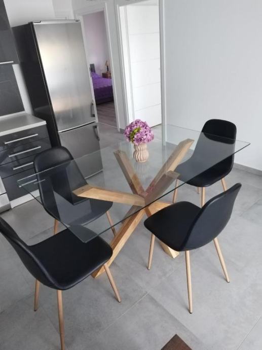 Iznajmljujem dvosobni stan u Rukavcu, Matulji. Sadrži 2 spavaće sobe, u svakoj se nalazi veliki bračni krevet sa noćnim ormarićima. Sadrži i kupaonicu sa tuš kabinom, dnevni boravak sa garniturom koja se može razvući i flat screen tv-om, blagavaonicu sa stolom i stolicama, potpuno opremljenu kuhinju sa hladnjakom i perilicom za suđe te veliku terasu sa garniturom za sjedenje na kojoj je dozvoljeno pušenje. Jedna spavaća soba i dnevni boravak imaju pristup terasi.