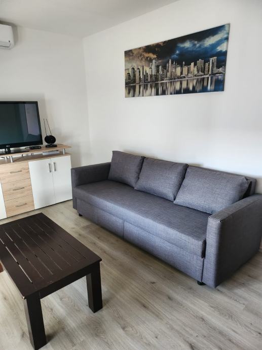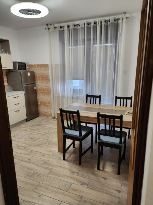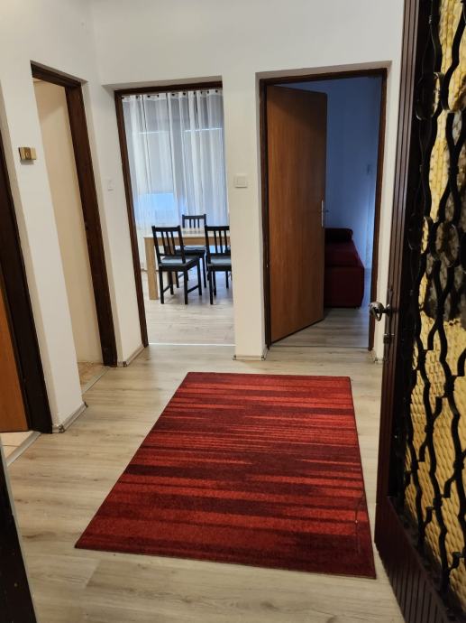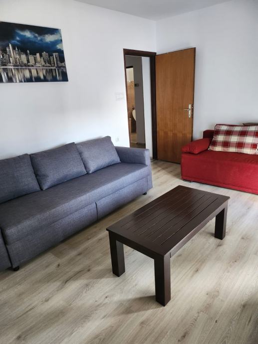 Iznajmljujem potpuno namjesten etažiran stan u kuci u prizemlju. Stan je prostran i ima izlaz na lođu iz kuhhinje i dnevne sobe, idealan za dvije osobe. Sastoji se od dnevne sobe, kuhinje, spavace sobe, kupaone, ostave i hodnika. Opremljen je perilicom posuđa, perilicom rublja, pecnicom, mikrovalnom, televizorom, klima uređajem .Stan se nalazi u urbanom dijelu Čulinca kod nogometnog igralista Čulinec, blizu dviju autobusnih linija (Kvaternikov trg i Dubrava), željezničke postaje te Slavonske avenije. U neposrednoj blizini nalazi se Špar, Dom zdravlja i pekara. Parkirno mjesto je besplatno na javnoj gradskoj površini. Kucni ljubimci nisu dozvoljeni. Ugovor se sklapa na rok od godinu dana. Režije nisu uključene u cijenu najma. Polog je 500,00 EUR.