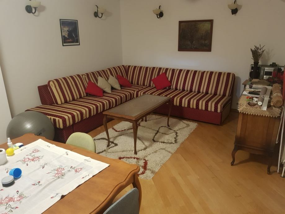 Namjesten stan u kuci na prvom katu. Etaziran, plinsko grijanje centralno. Posebna brojila za struju , vodu i plin. Internet free..Pogodno za parove ili dvije osobe. Nema parkirno mjesto.