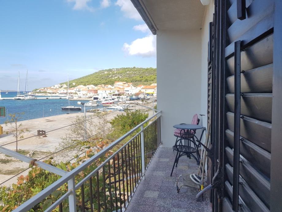 Iz spavaće sobe i dnevnog boravka je izlaz na balkon s kojeg se pruža pogled na Kaprije i more.