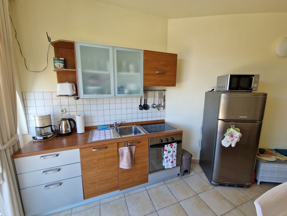 -kuhinja - električna ploča za kuhanje s 4 plamenika, pećnica, mikrovalna pećnica, aparat za kavu, kuhalo za vodu, toster