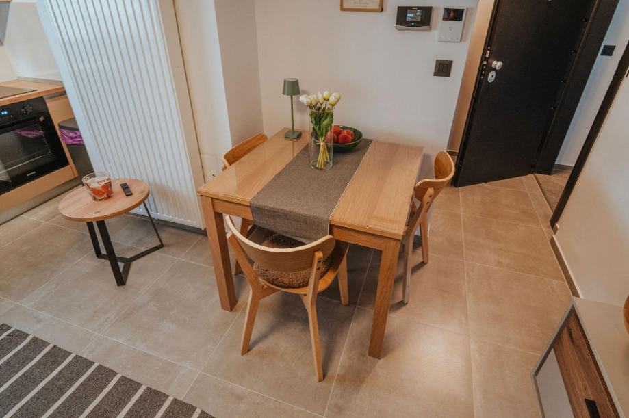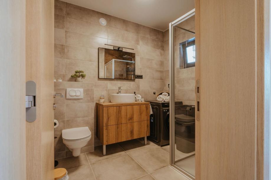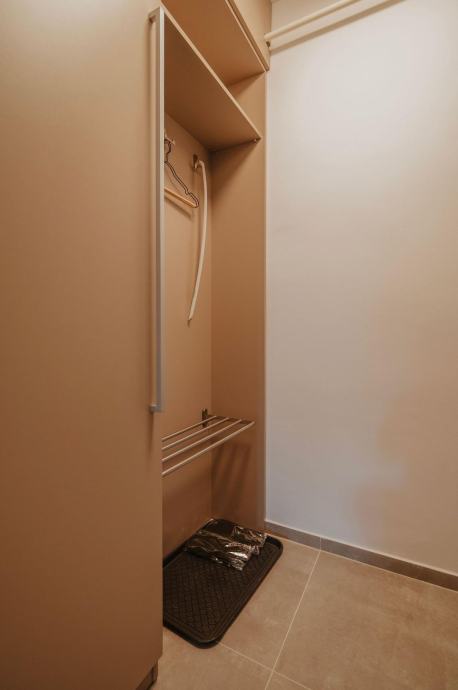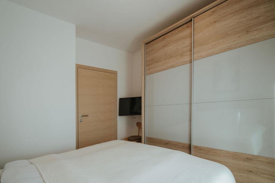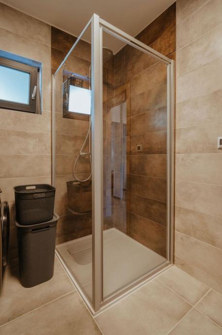STAN IMA KUHINJU SA BLAGAVAONOM, U KUHINJI SU SVI APARATI (PEĆNICA, STAKLOKERAMIKA PLOČA ZA KUHANJE,PERILICA POSUĐA,FRIŽIDER SA LEDENICOM,APARAT ZA KAVU, KUHALO ZA VODU , MIKROVALNA,TOSTER). KOMFORAN DNEVNI BORAVAK U KOJEM JE KUTNA GARNITURA NA RAZVLAČENJE, SPAVAČU SOBU SA VELIKIM BRAČNIM KREVETOM I ORMAROM. KUPAONU SA TUŠ KABINOM I MAŠINOM ZA PRANJE VEŠA, HODNIK SA GARDEROBNIM ORMAROM.
