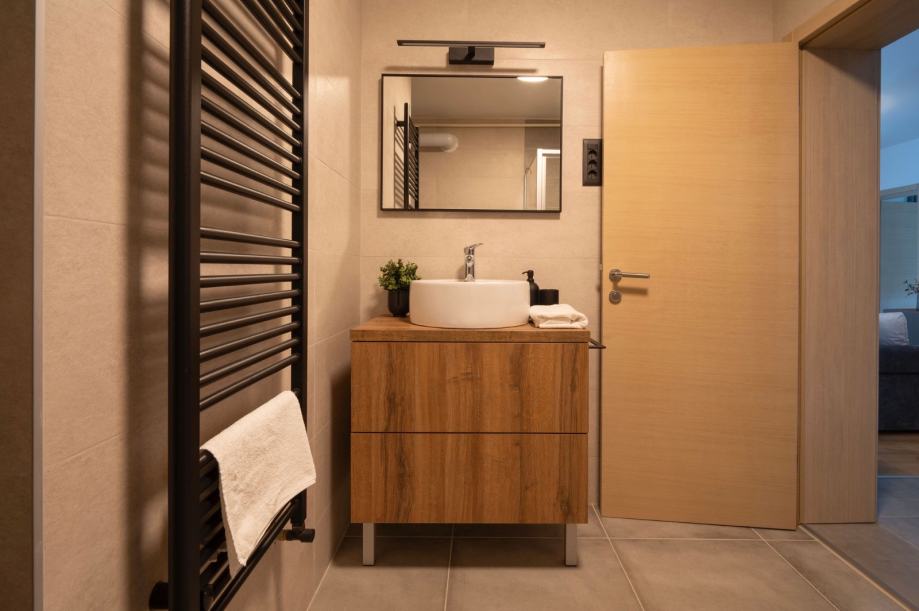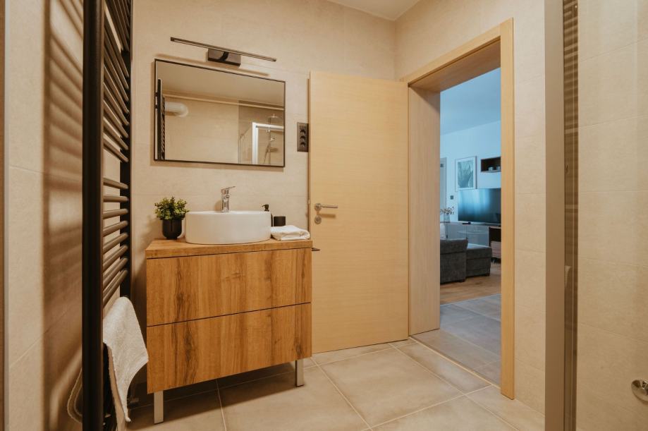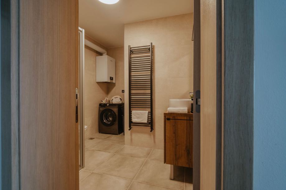 STAN IMA KUHINJU SA BLAGAVAONOM,U KUHINJI SU SVI APARATI (PEĆNICA, STAKLOKERAMIKA PLOČA ZA KUHANJE,PERILICA POSUĐA, FRIŽIDER SA LEDENICOM, APARAT ZA KAVU, KUHALO ZA VODU , MIKROVALNA,TOSTER)., OSTAVA U SKLOPU KUHINJE. KOMFORAN DNEVNI BORAVAK U KOJEM JE KUTNA GARNITURA NA RAZVLAČENJE, SPAVAČU SOBU SA VELIKIM BRAČNIM KREVETOM I ORMAROM. KUPAONU SA TUŠ KABINOM I MAŠINOM ZA PRANJE VEŠA, BALKON,HODNIK SA GARDEROBNIM ORMAROM.