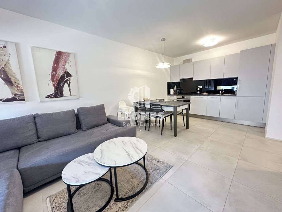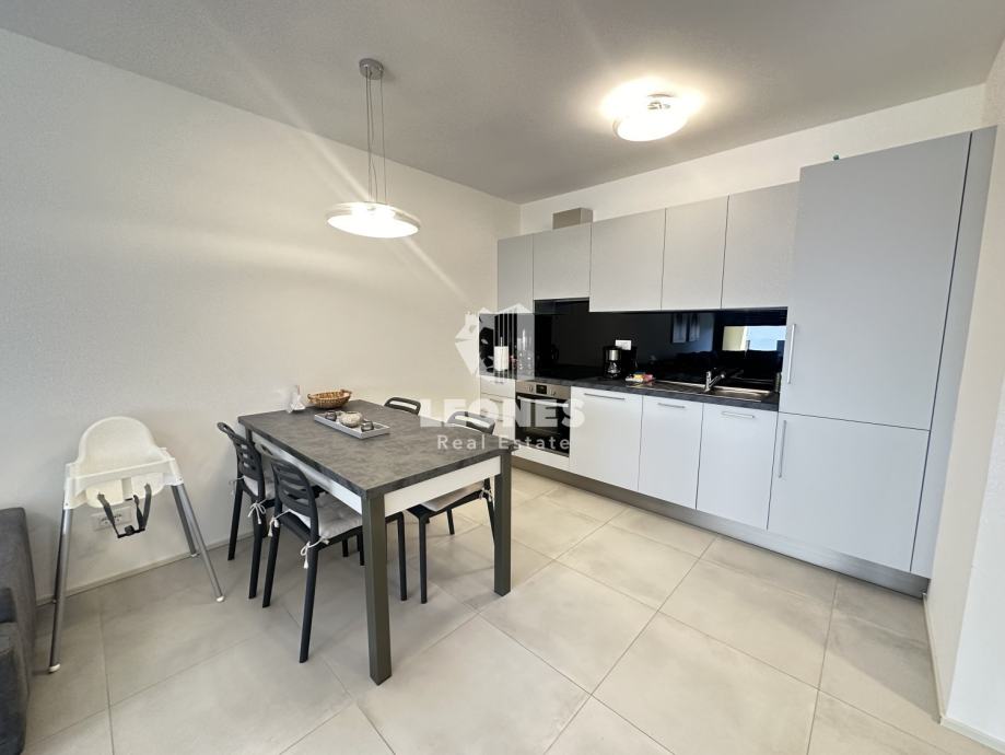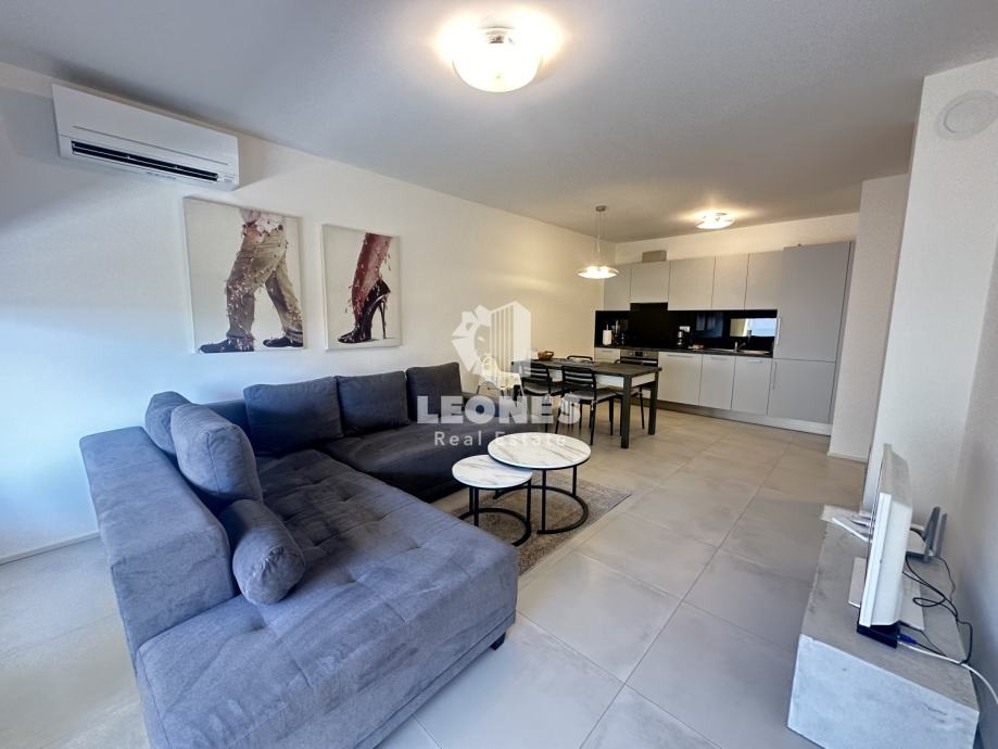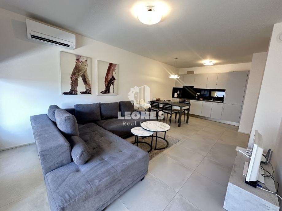 Stan ima 63m2 te se sastoji od prostranog dnevnog boravka s kuhinjom i blagovanicom, spavaće sobe, kupatila i velike natkrivene terase.