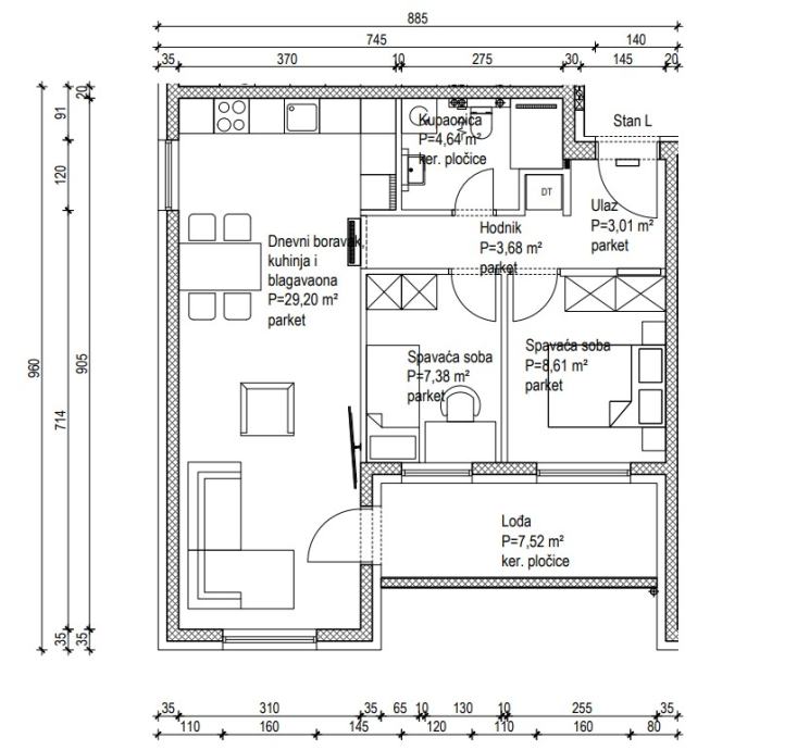 Uz stan je obavezna kupnja vanjskog ili garažnog parkirnog mjesta.