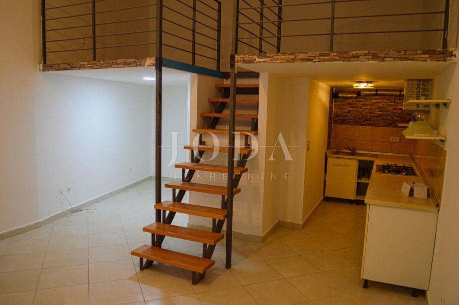 Stan je smješten u suterenu stambeno/poslovne zgrade, a sastoji se od dnevnog dijela – kuhinje, dnevnog boravka i kupaonice te noćnog dijela (galerije),