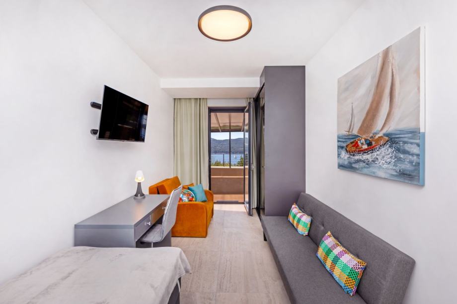 Iznajmljuje se prekrasan, nov i namješten stan u novogradnji na izuzetnoj lokaciji sa prostranom terasom, bazenom i pogledom na more. Stan se sastoji od dnevne zone (dnevni boravak, kuhinja i blagovaona), 3 spavaće sobe, 2 kupaonice.