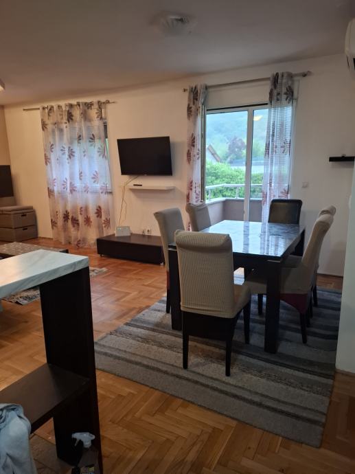 Iznajmljujem dvoiposoban potpuno namjesten stan sa svim uredajima. Stan se sastoji od kuhinje sa blagavaonom, ostave, djecje sobe, spavace sobe sa posebnim prostorom u kojemu su ugradbeni ormari, spremiste u podrumu zgrade i osigurano parking mjesto. Blizina skole i vrtice..