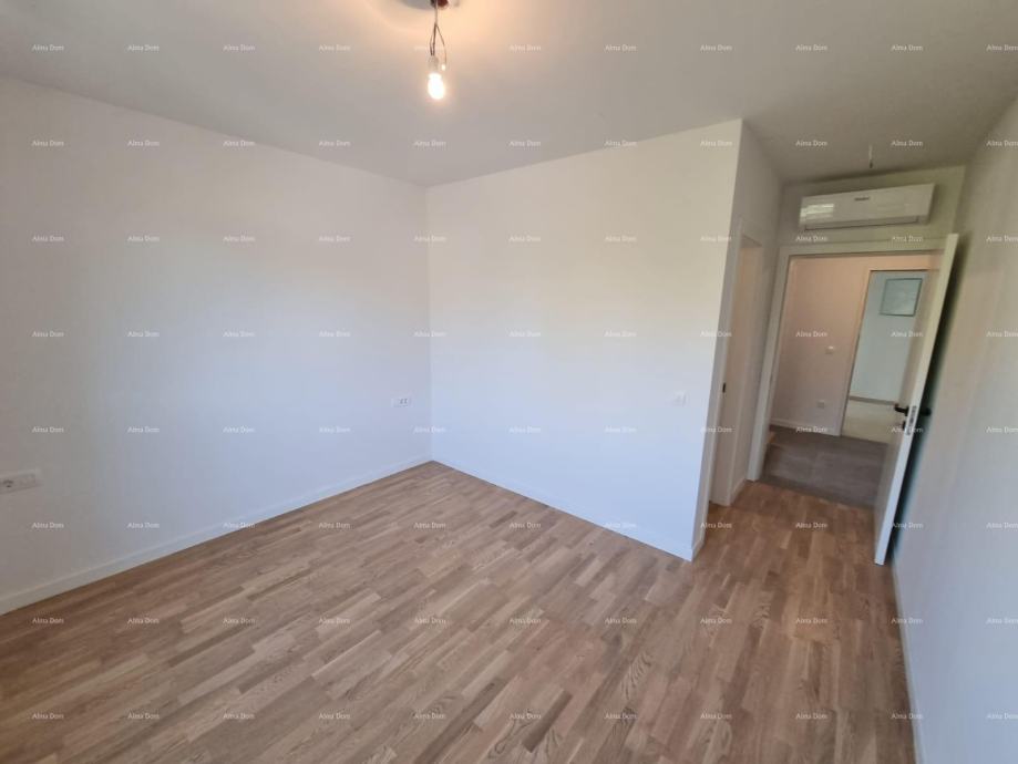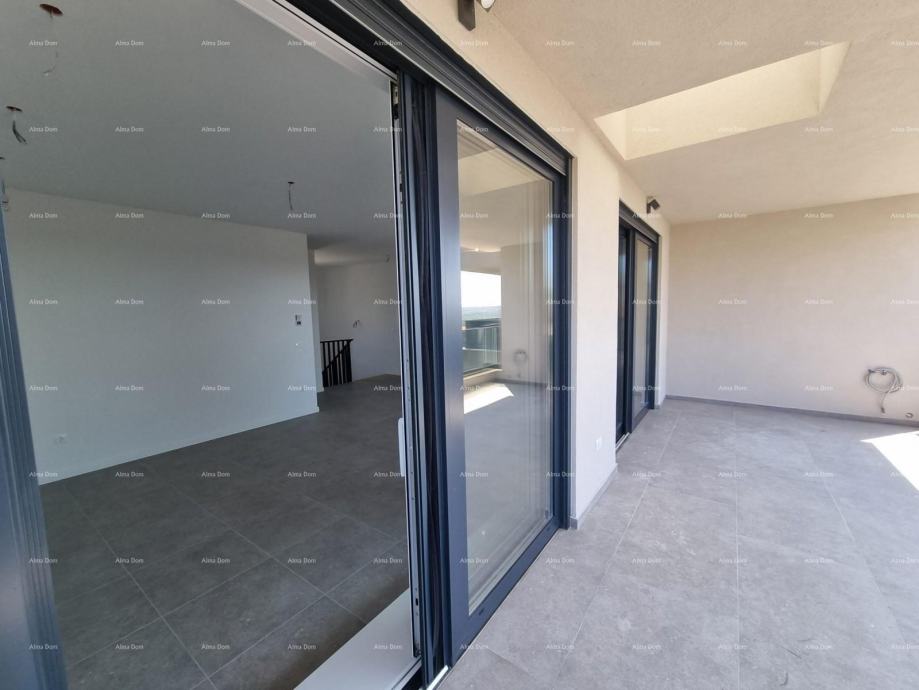 Stan se sastoji od donjeg dijela u kojem se nalazi hodnik, garderoba, wc/praonica, spavaća soba s kupaonicom, na katu se nalazi kupaonica, spavaća soba, spavaća soba, kuhinja s blagavaonciom te dnevnim boravkom i velika natkrivena terasa od 20 m2. Stanu pripada spremište te vanjski parking.