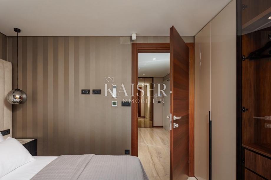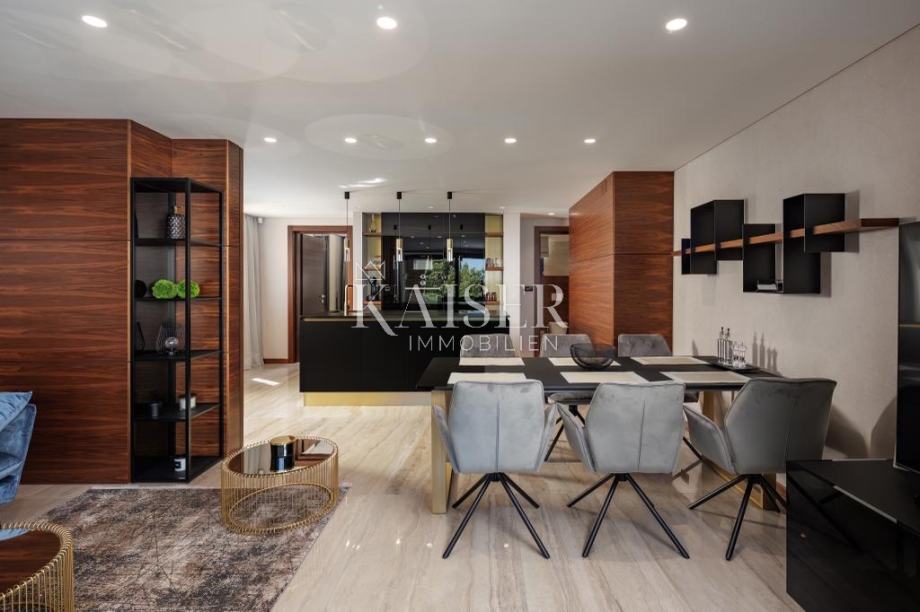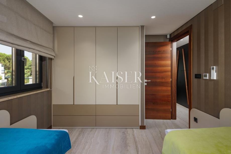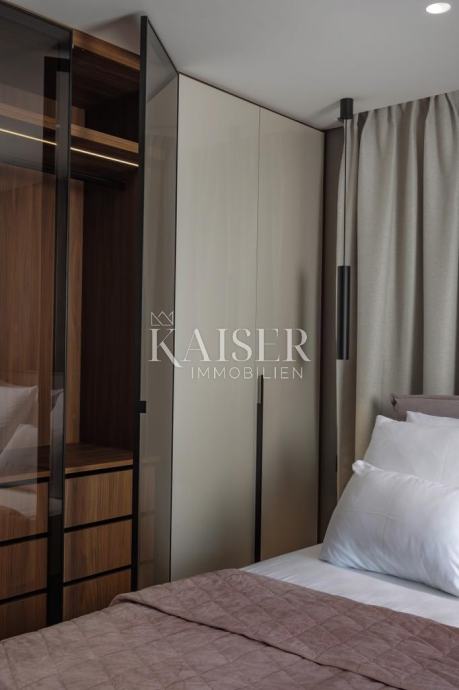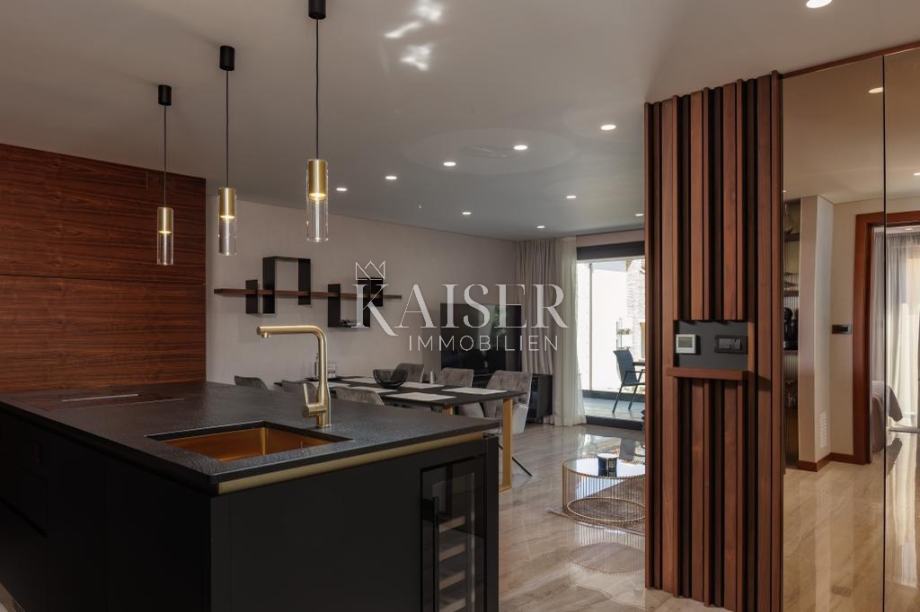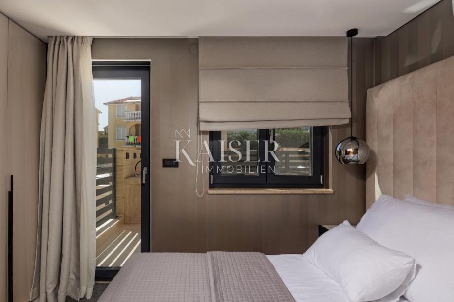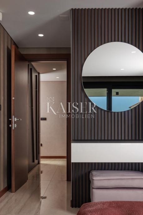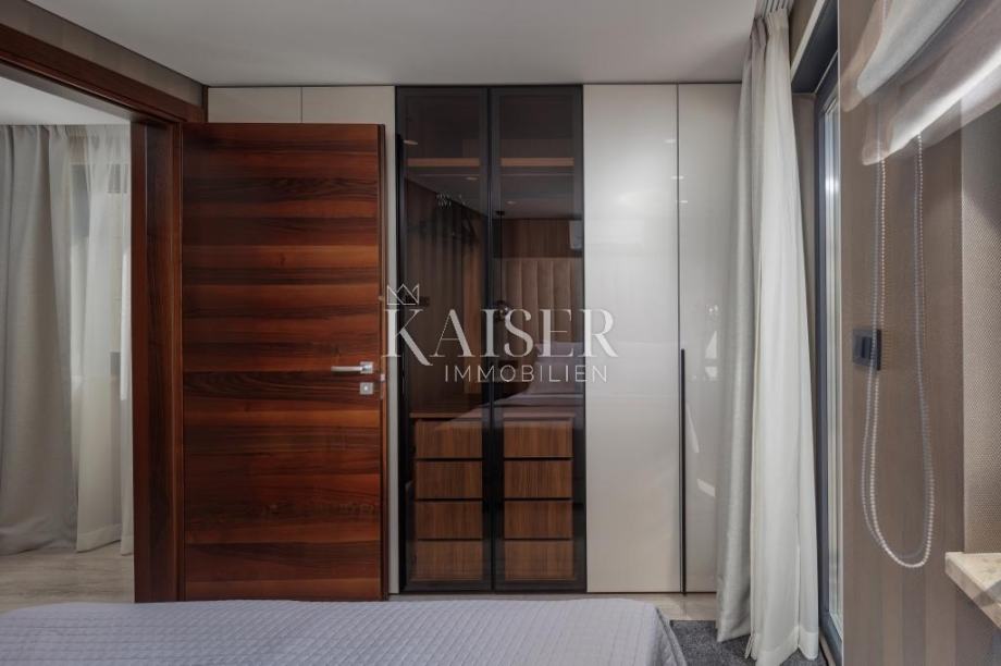 Kaiser Immobilien nudi stan na prvome katu u luksuznoj villi 80 metara od mora. Villa je sagrađena 2022. godine te su pri gradnji korišteni najkvalitetniji materijali kao i inovativan način gradnje. U 126 m2 smještene su 3 spavaće sobe, svaka s pripadajućom kupaonicom, gostinjski toalet te veliki dnevni boravak s kuhinjom. Stanu pripada i velika natkrivena terasa veličine 26 m2. Za potpuni užitak tu je i velika privatna okućnica površine 76 m2 gdje se nalaze bazen i vrt.