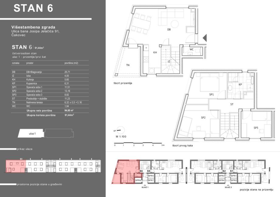Na raspolaganju su četverosobni stanovi od 66,00m2 te jedan dvoetažan četverosobni stan od 91,44m2