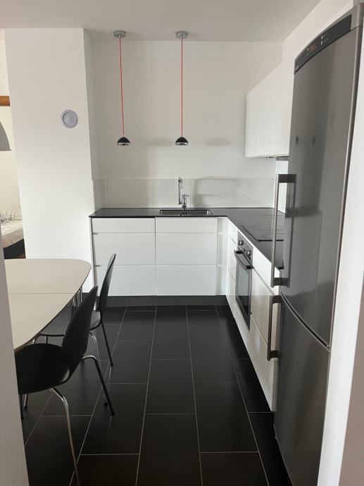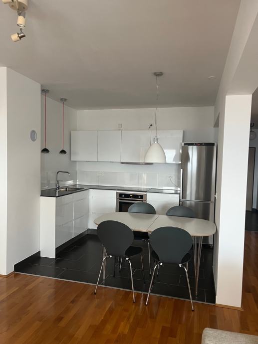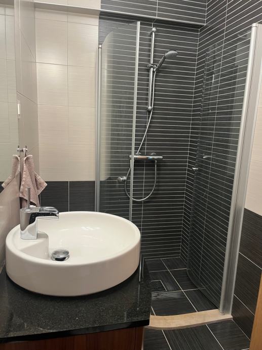 Nudimo u ponudi izvrsnu nekretninu od ukupne površine od 76m2. Stambena jedinica ima prostrani balkon koji pruža divan pogled na more. Nekretnina ima dvije spavaće sobe, kupaonicu i prostrani dnevni boravak spojen s kuhinjom. Idealan je za pogodan obiteljski život. Također kompletna nekretnina je namještena s modernim namještajem i kao takva se i prodaje. Nadalje postoji mogućnost kupnje garažnog mjesta za 25000EUR ili vanjskog parking mjesta za 8000EUR.