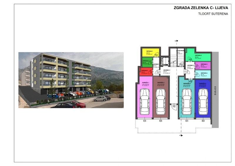 Garažna mjesta se prodaju po cijeni 1500€/m2, vanjsko parkirno mjesto je 5000€, ostava 5000€.