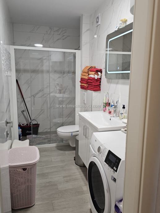 Stan se sastoji od 3 spavaće sobe (glavna spavaća soba ima vlastiti izlaz na loggiu), kuhinje, blagovaonice i dnevne sobe s izlazom na lijepu terasu sa koje se pruža otvoreni pogled na more i grad, hodnika, kupaonice te wc-a, ukupne površine 92,80 m2 (odnosno korisne površine 85,10 m2) a pripada mu i garažno mjesto pov.12,10m2 (korisne površine 6,00m2) do kojega se dolazi direktno iz stana liftom. Ova izuzetna nekretnina je opremljena kvalitetnim namještajem (kuhinja i većina namještaja u stanu napravljeni su po mjeri te je opremljena kvalitetnim uređajima poznatih proizvođača). Dokumentacija potpuno uredna (vlasnički list, uporabna dozvola), mogućnost kupnje kreditom.