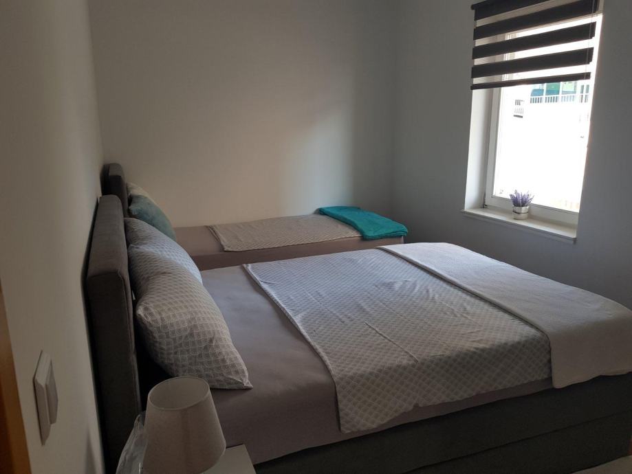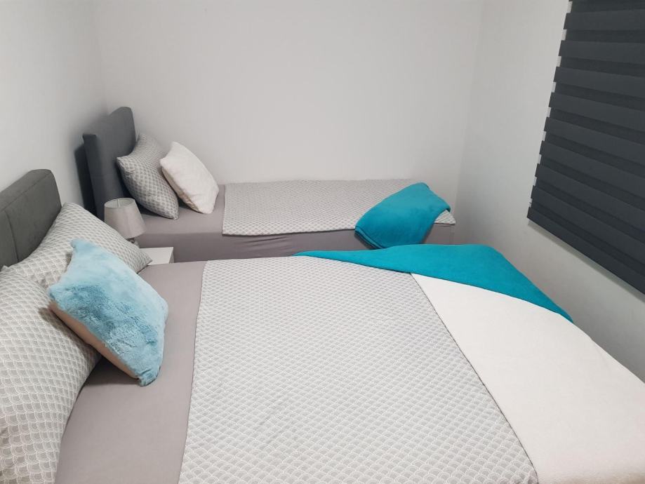 Apartman se sastoji od dvije spavaće sobe, kupaonice, kuhinje s blagovaonicom te dnevnog boravka. Ukupno ima 5+ ležajeva i pruža dovoljno prostora za udoban boravak više članova.