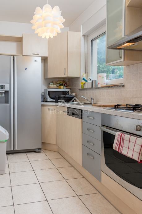 Nekretnina se prodaje potpuno namještena i opremljena. U stanu se nalazi velik broj ugradbenih ormara koji nude obilje prostora za pohranu. U cijenu su uključeni perilica rublja, klima uređaj, alarmni sustav te kompletno opremljena kuhinja s perilicom posuđa, pećnicom, napom, mikrovalnom pećnicom i prostranim side-by-side hladnjakom.
