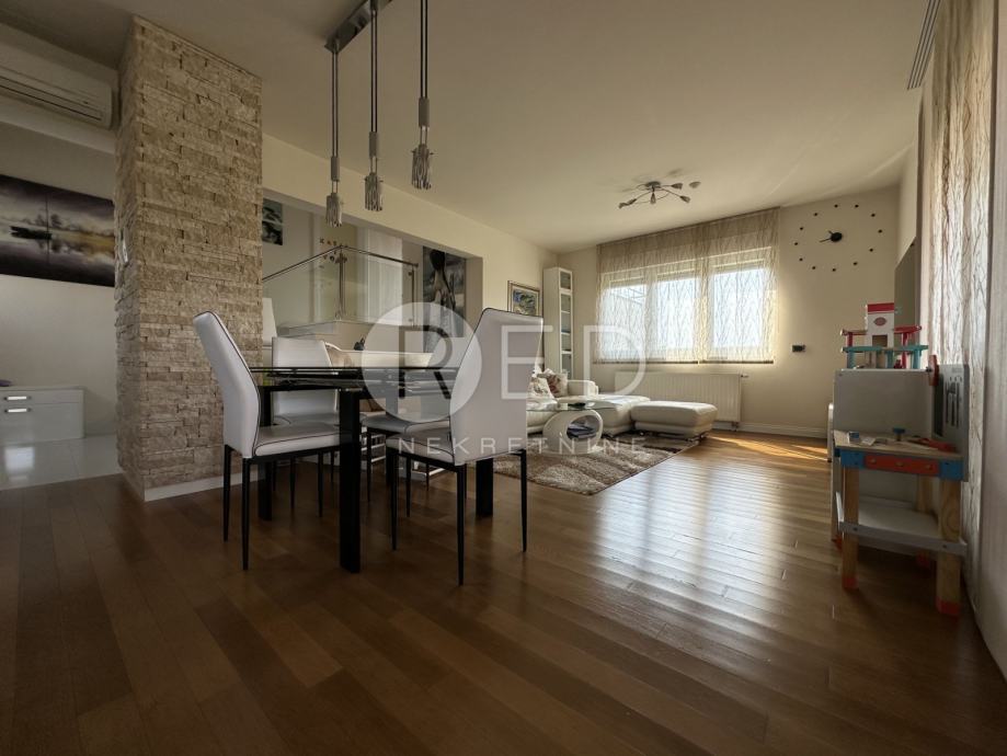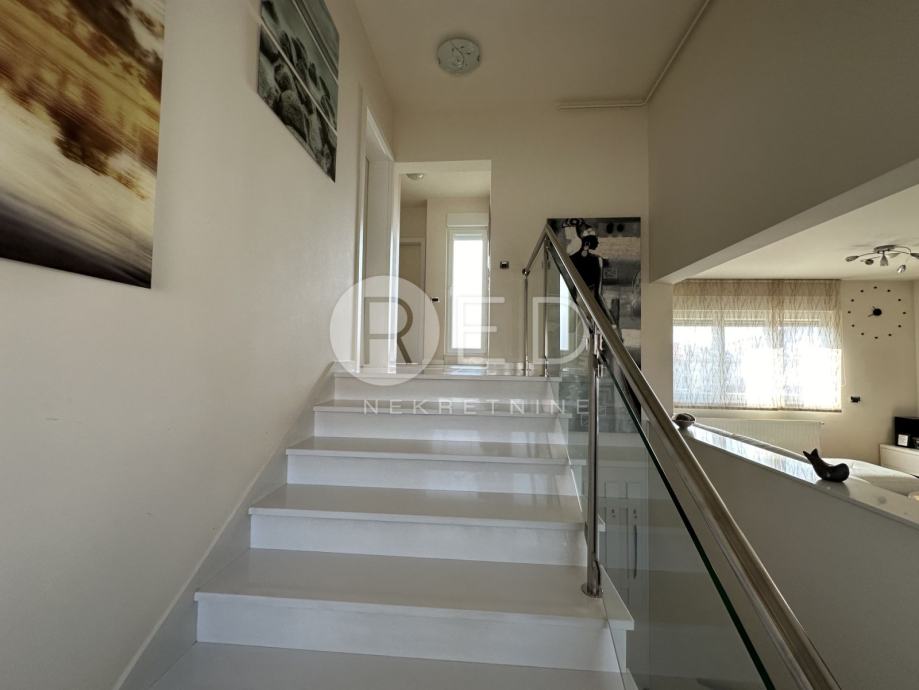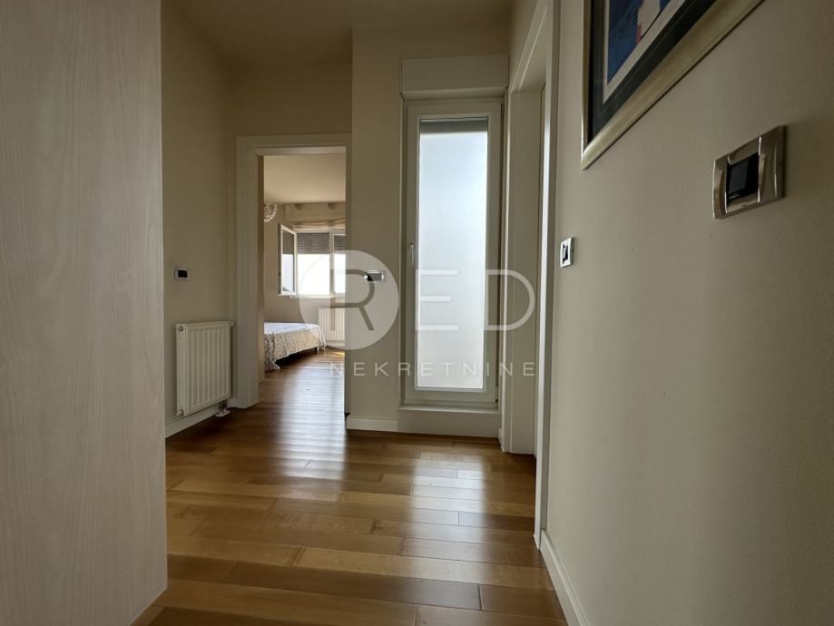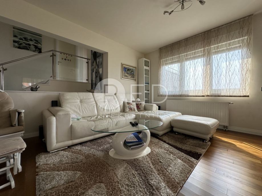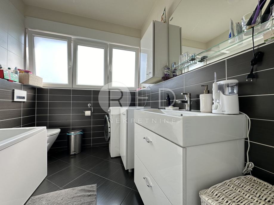 Stanu dodatno pripadaju dvije manje i jedna velika terasa, garažno mjesto i vanjsko parkirno mjesto.