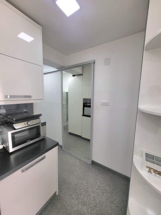 Kupaonica ima walk in tuš kabinu, zasebno grijanje, veš mašinu sa sušilicom, smart ogledalo te klizna ogledalo vrata.