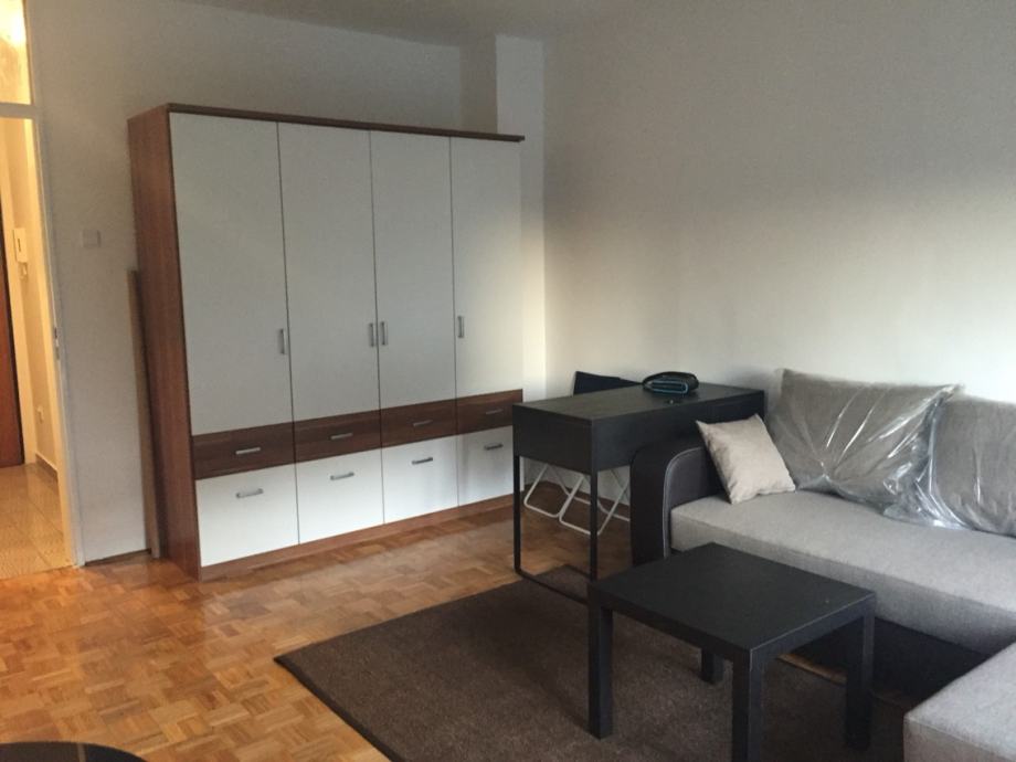 Iznajmljujemo potpuno uređen i namješten stan. Sastoji se od dnevnog boravka, kuhinje, kupaonice, spavaće sobe i ostave.
