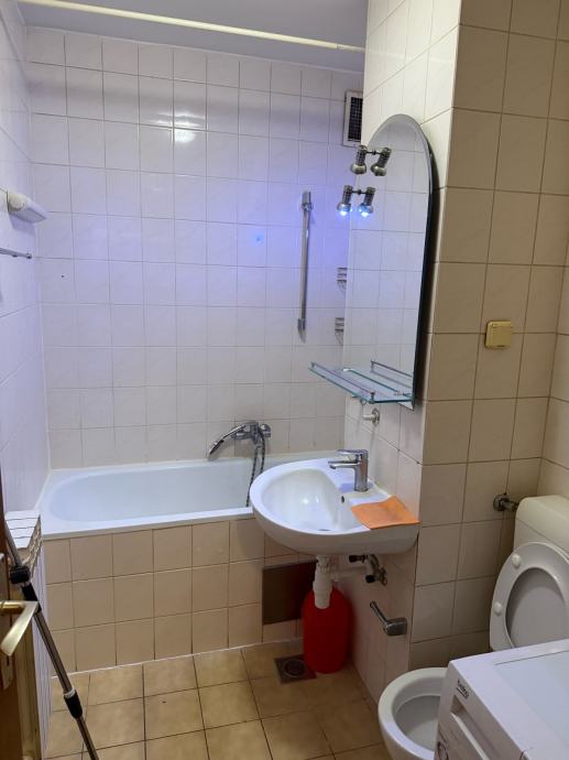 Kupaonici se pristupa iz hodnika, opremljena je perilicom rublja. Grijanje je putem gradske toplane, a u stanu je instaliran i klima uređaj. Stan ima lođu.