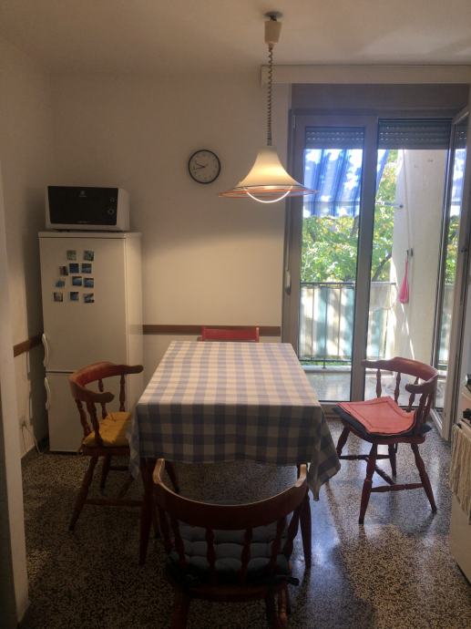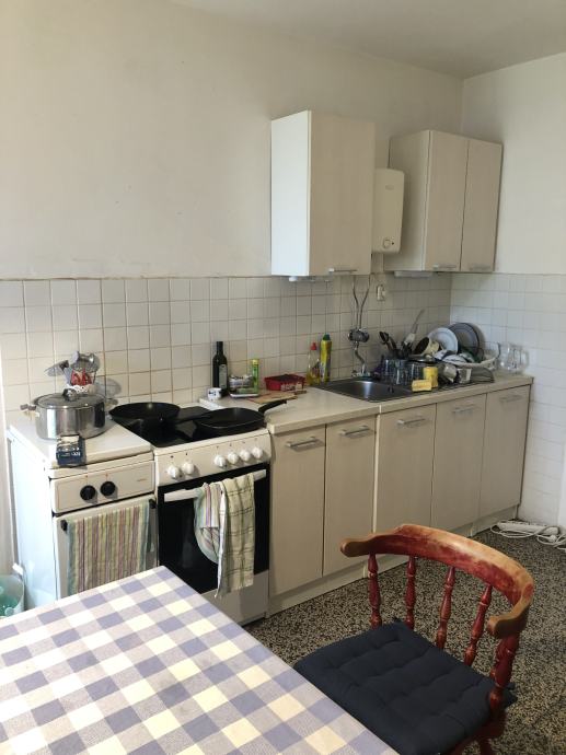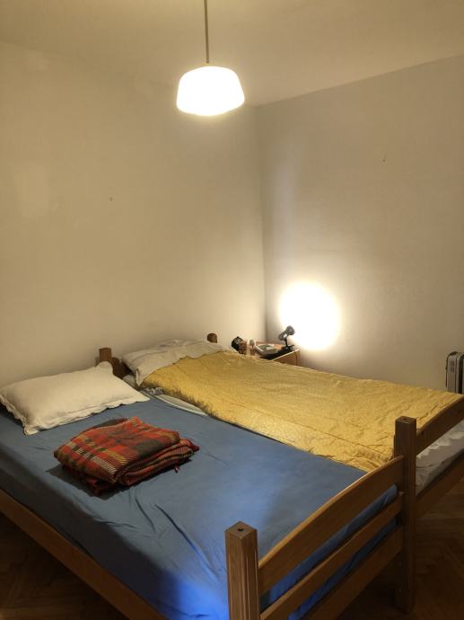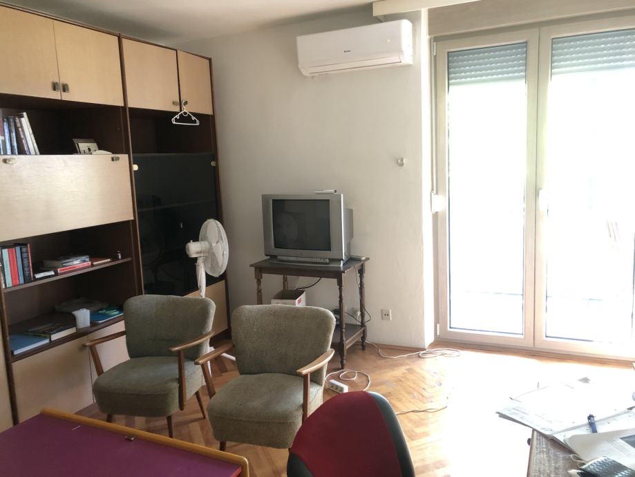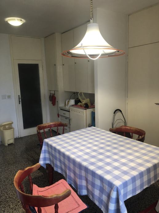 Ugodan i prostran stan na Manušu, u neposrednoj blizini centra grada, sastoji se od dnevne sobe, velike spavaće sobe, male spavaće sobe (nije na slikama trenutno, dva kreveta), kuhinje s blagavaonicom, odvojenog wc-a i kupaone, i balkona. Stan je u potpunosti namješten, klimatiziran, djelomično renoviran prije nekoliko godina, te ima sve potrebno za ugodan život. Grijanje na električne grijalice/radijatore i klima uređaj.