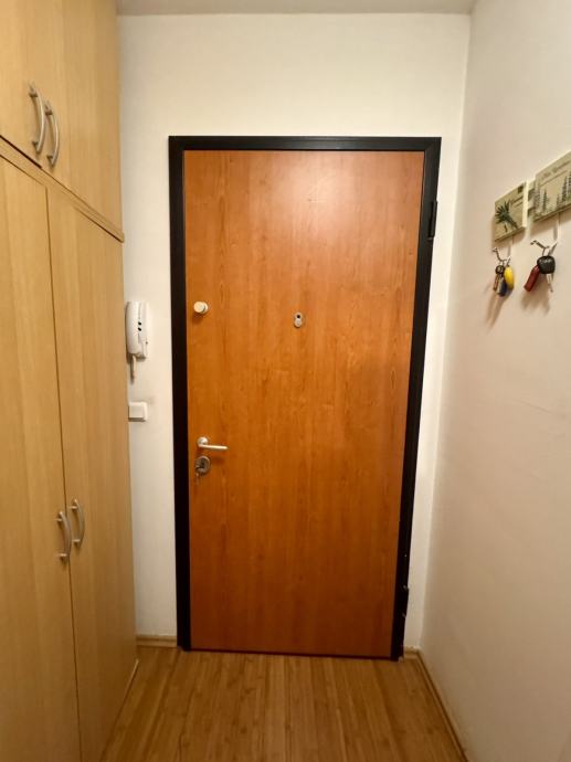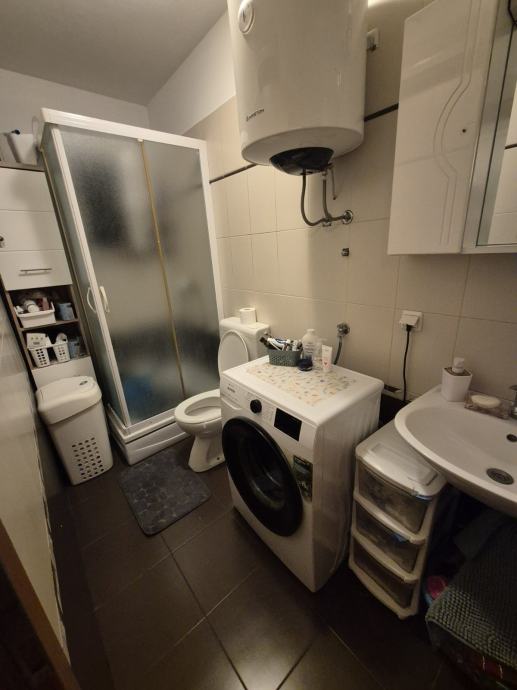Kuhinja i dnevni boravak u otvorenom prostoru orijentacije istok zapad, jedna soba kojoj prozor gleda na zapad, kupaona sa prozorom, hodnik, spremište u prizemlju zgrade, korištenje zajedničke okućnice oko 20 m kvadratnih. Vanjsko parkirno mjesto nenatkriveno. PVC stolarija. Energetski certifikat je u izradi.