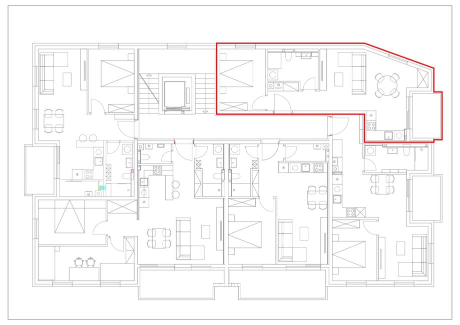 - u suterenu se nalazi 10 parkirnih mjesta, spremišta za stanove te glavni ulaz sa stepeništem i liftom, dok se u prizemlju i na katovima nalaze dvosobni, trosobni i četverosobni stanovi.