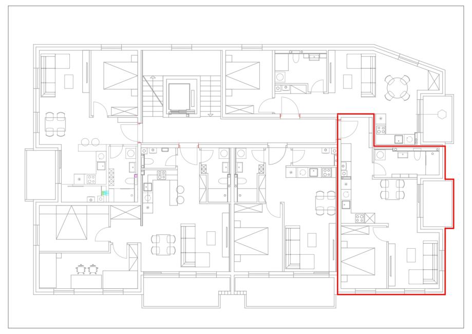 - u suterenu se nalazi 10 parkirnih mjesta, spremišta za stanove te glavni ulaz sa stepeništem i liftom, dok se u prizemlju i na katovima nalaze dvosobni, trosobni i četverosobni stanovi.
