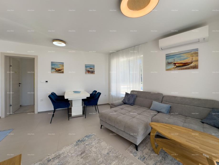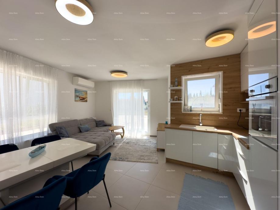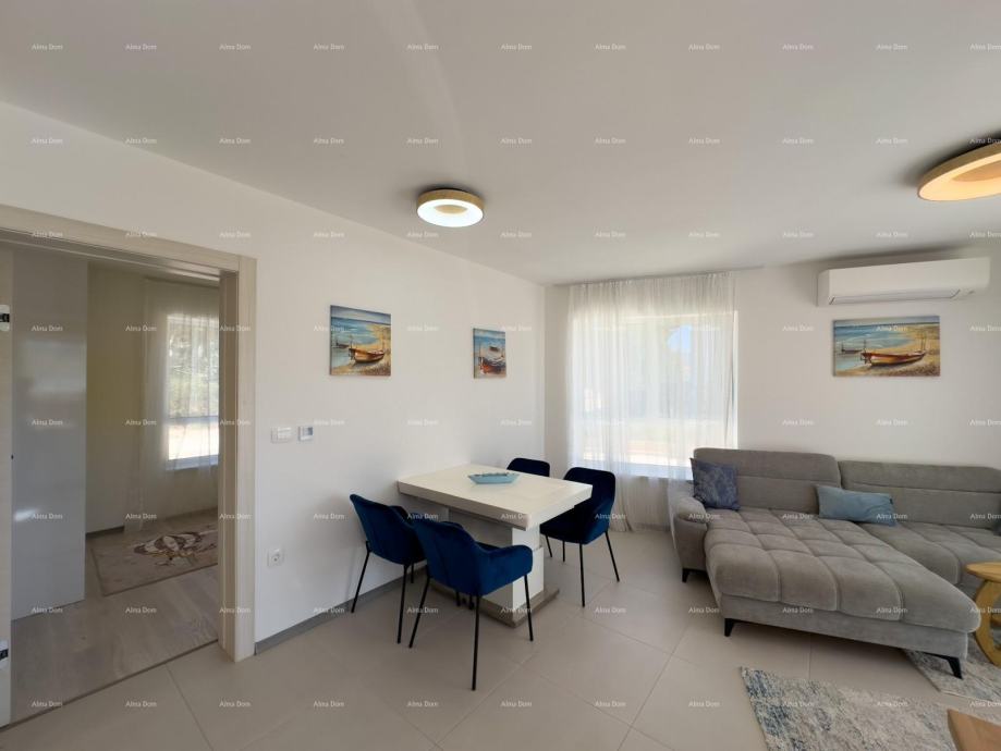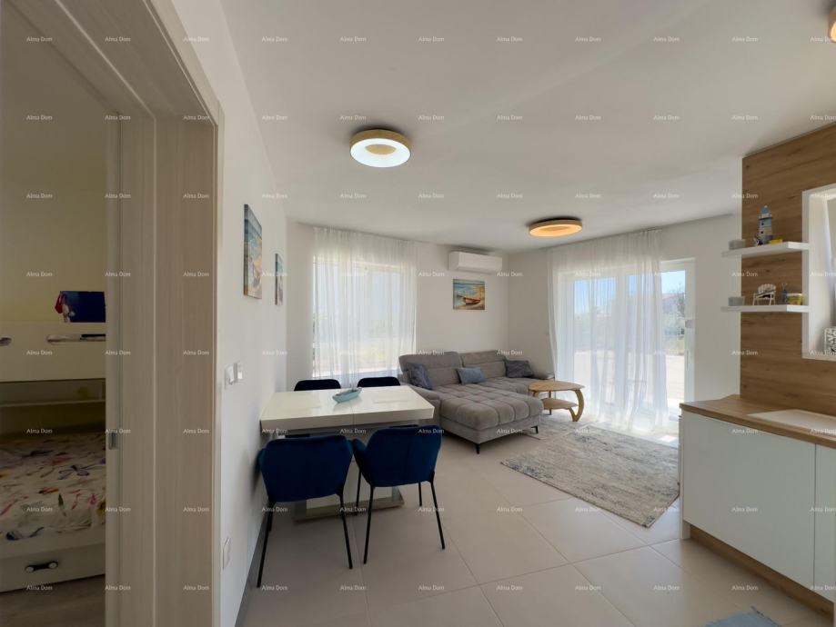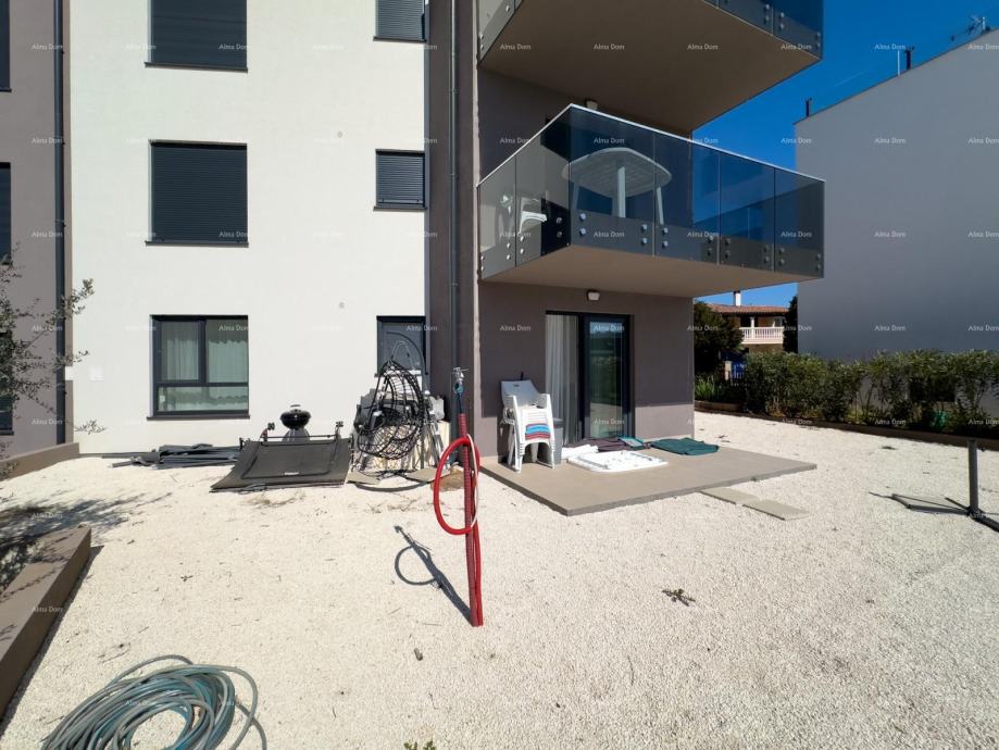 Stan se nalazi u prizemlju nove zgrade i sastoji se od dvije spavaće sobe, kupatila, kuhinje, blagovaonice i dnevnog boravka iz kog se izlazi na terasu i veliki vrt površine 200m2.