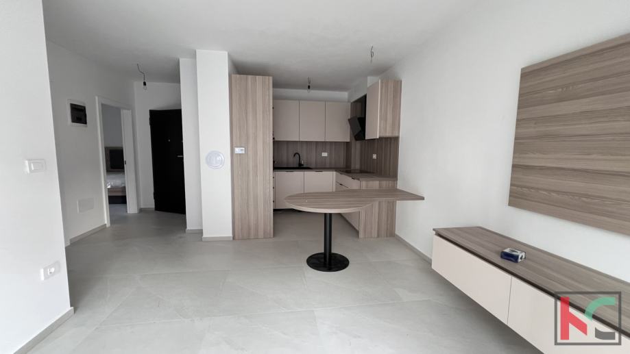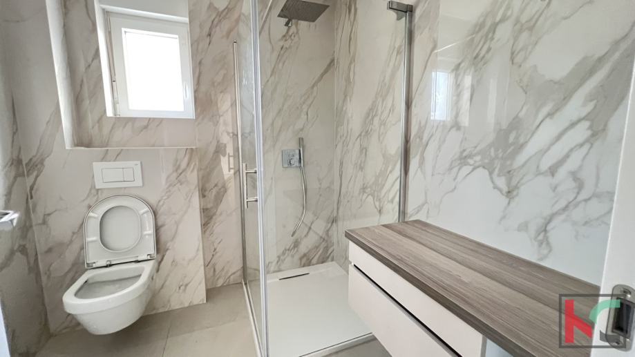Stan je ukupne površine 53 m2, odličnog rasporeda, sastoji se od open pace kuhinje s dnevnim boravkom i izlazom na natkrivenu terasu, dvije spavaće sobe, kupaonice, predsoblja i natkrivenog parkirnog mjesta u vlasništvu.