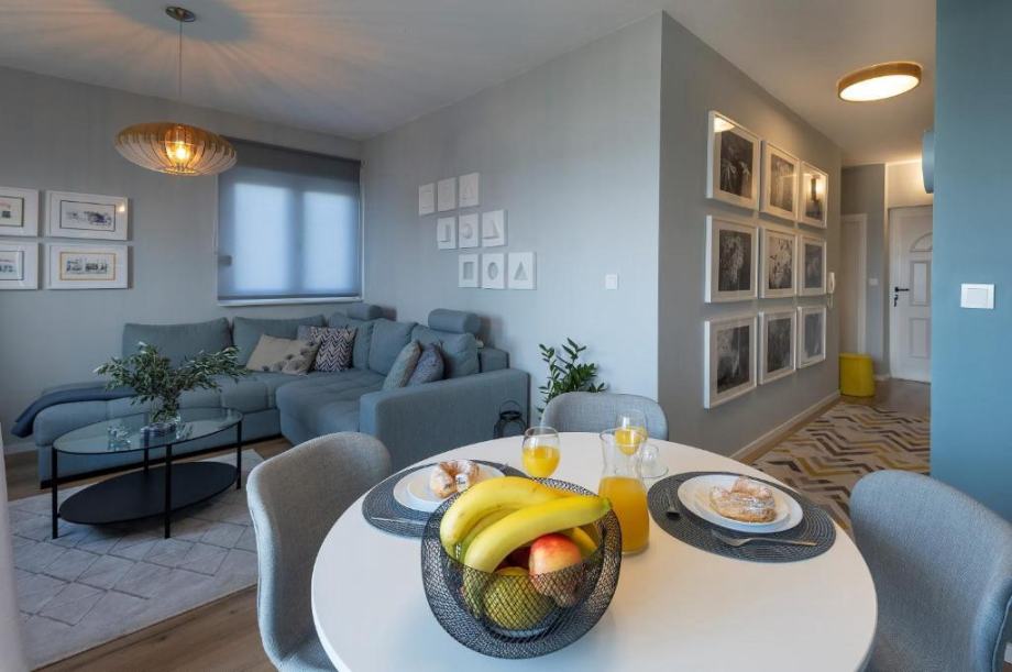 Kompletno je renoviran i novonamješten u razdoblju od 2021. do 2024. te se tako uređen prodaje s namještajem, svom pripadajućom kuhinjskom tehnikom i perilicom rublja. Stan je također opremljen inverterskim klima uređajem. Nalazi se na prvom katu zgrade i od ulaza ga dijeli svega par stepenica. Turistički je kategoriziran s 4 zvjezdice i ima uhodani biznis ljetnog iznajmljivanja te može biti i dobar izvor dodatne zarade kada se ne boravi u njemu. Pogodan je cijelogodišnji boravak.
