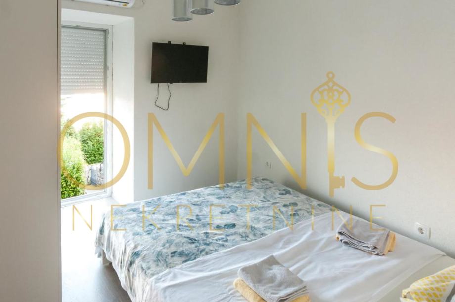 Stan je potpuno opremljen – sadrži kuhinju s aparatima, perilicu rublja, TV i krevet.