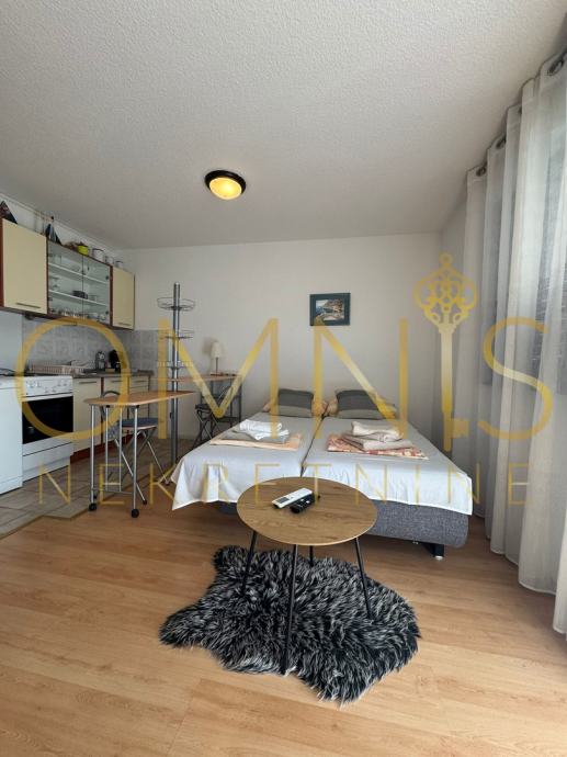 Na mirnoj lokaciji otoka Krka, u okruženju prirode, iznajmljuje se garsonijera površine 25 m2, smještena na drugom katu stambene zgrade.