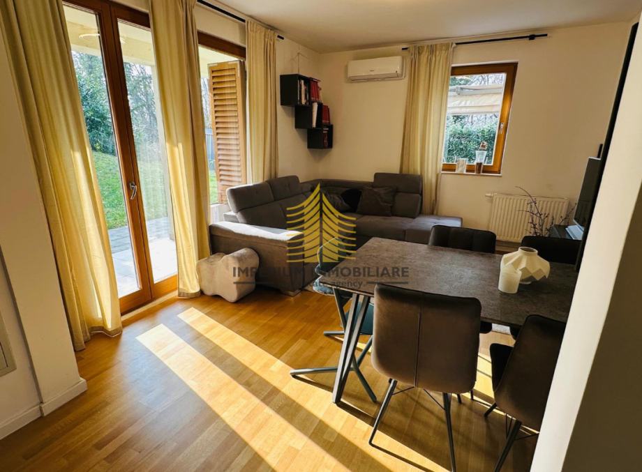 Stan se nalazi na mirnoj lokaciji i pruža lijep pogled, što ga čini izvrsnim izborom za one koji traže miran i ugodan životni prostor u blizini prirode. Izuzetna prednost ovog stana je terasa koja omogućuje uživanje na otvorenom prostoru. Prostor je vrlo sunčan, a za dodatnu udobnost brine klima uređaj. Grijanje je centralno, što osigurava ugodnu temperaturu tijekom cijele godine. Stan također ima mogućnost korištenja roštilja.