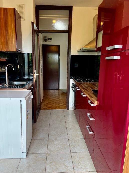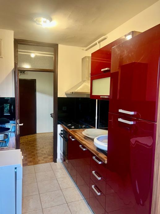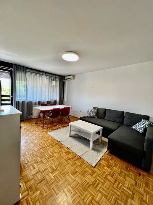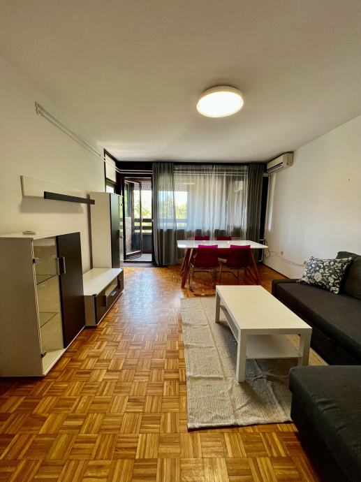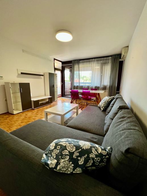 Iznajmljujemo potpuno opremljen, klimatiziran, vrlo ugodan i potpuno namješten stan od 55 kvadrata na 3. katu kvalitetno građene zgrade sa liftom.