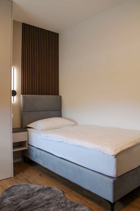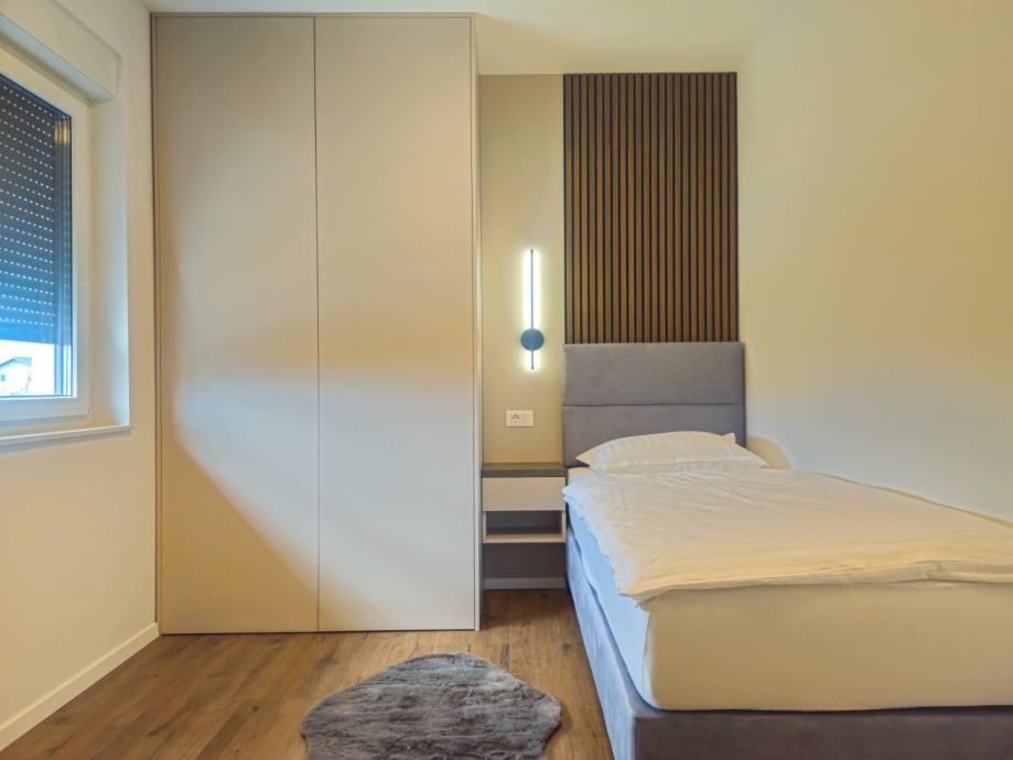 Stan posjeduje privatan parking. Radi se o dvorišnoj zgradi, pogodnoj za miran obiteljski život. Zgrada je napravljena 2025. godine. Te je sve u stanu potpuno novo.