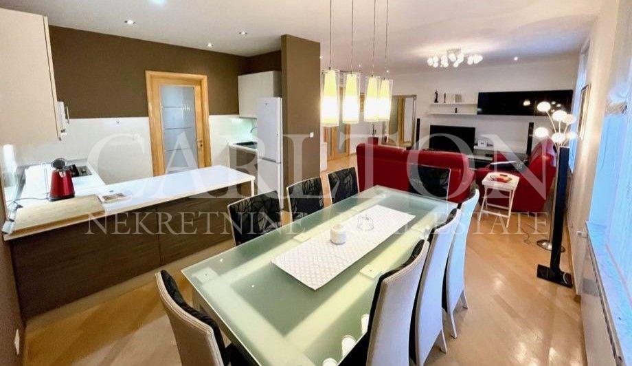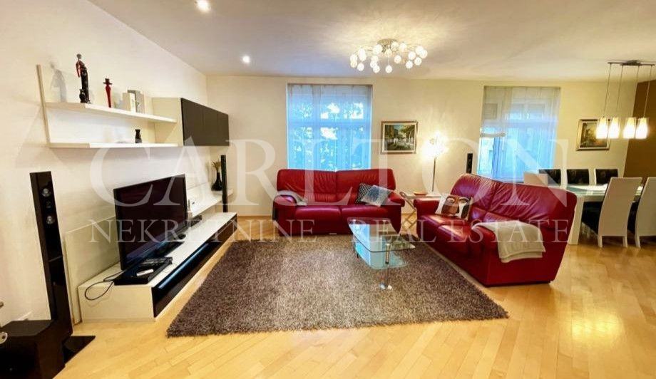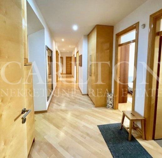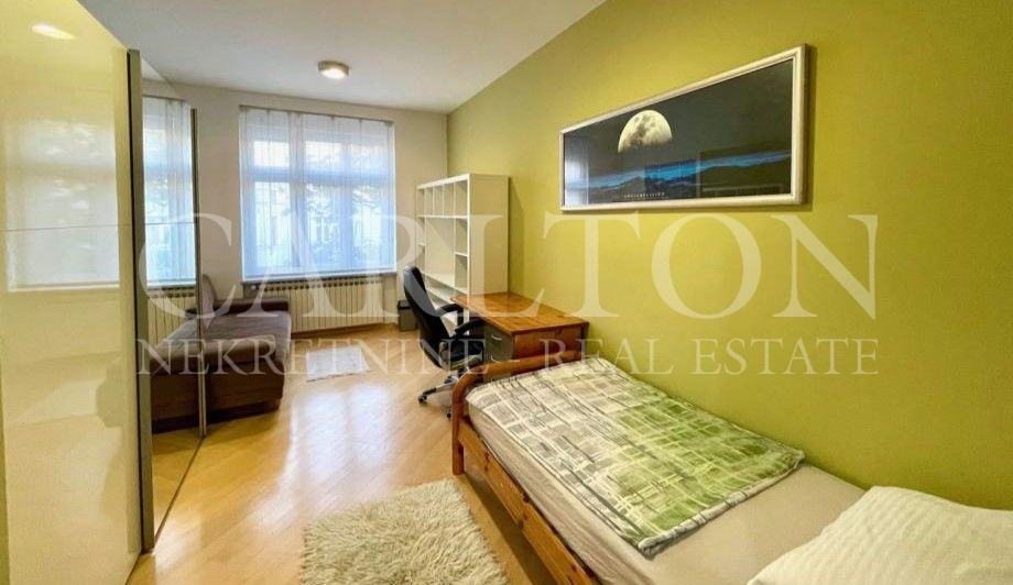 Iznajmljuje se kvalitetno uređen stan visokih stropova, površine 148 m2, na 2. katu, sa besplatnim parkingom u dvorištu zgrade u centru grada. Ovaj lijepo namješteni stan sastoji se od: - velikog dnevnog boravka spojenog s blagovaonicom i kuhinjom - 48m2 - 1. spavaća soba: krevet 180x200 i veliki ormar - 2. spavaća soba: krevet 160x200, ormar i komoda - 3. spavaća soba: jednostruki krevet, kauč na razvlačenje, ormar, radni stol i polica - 4. spavaća soba: krevet 140x200 i ormar - 2 kupaonice s WC-ima -ostava - balkon - hodnik Top mikrolokacija, muzeji, kazališta, galerije, tramvajska stanica, dućani, kafići, restorani, fitnes i dr. su u neposrednoj blizini zgrade. Stan je potpuno namješten, te opremljen sa: TV, optički internet, klima uređaj, perilica i sušilica rublja, perilica suđa, glačalo, sušilo za kosu, mikrovalna pećnica, toster, aparat za kavu, posuđe i td. Stanu pripada ostava u podrumu zgrade. Režije po stvarnoj potrošnji (plinsko etažno grijanje).