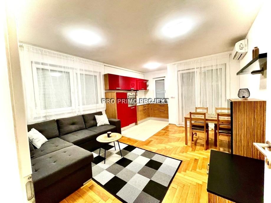 Stan se sastoji od hodnika, dnevnog boravka i kuhinje sa blagovaonicom, spavaće sobe, kupaonice i balkona.