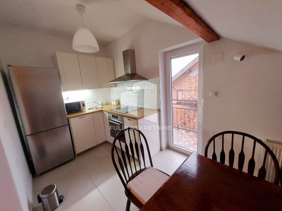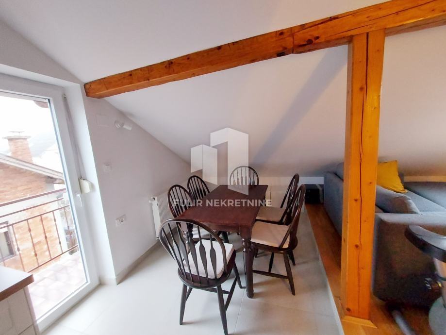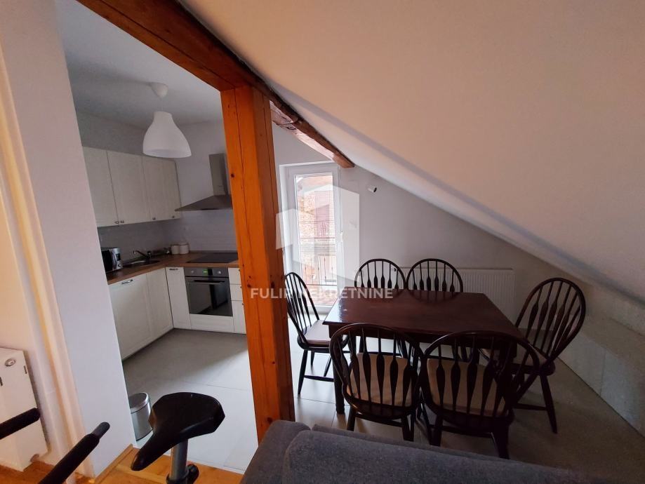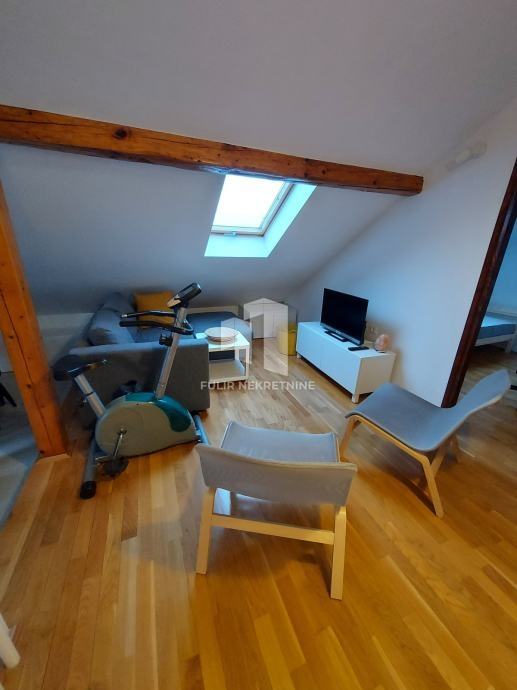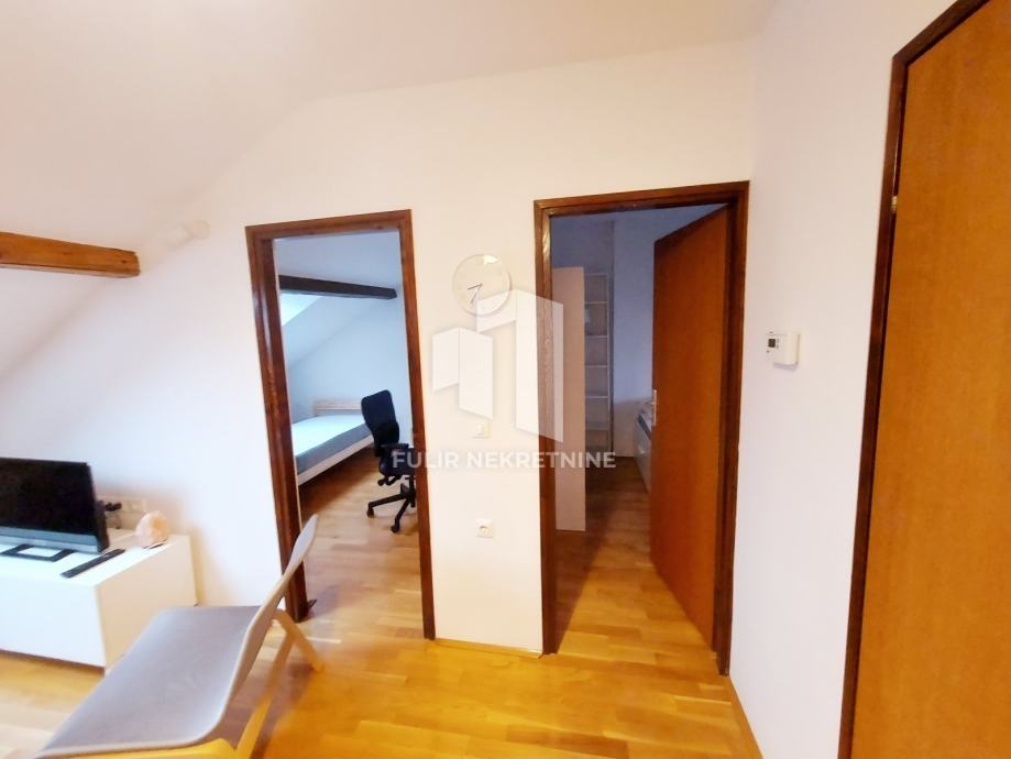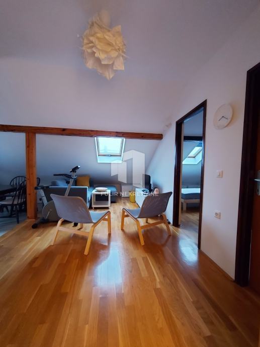 Stan se nalazi u potkrovlju kuće, no ima zaseban ulaz i vlastite stepenice iz dvorišta, čime je u potpunosti odvojen i neovisan o preostala dva stana u kući.