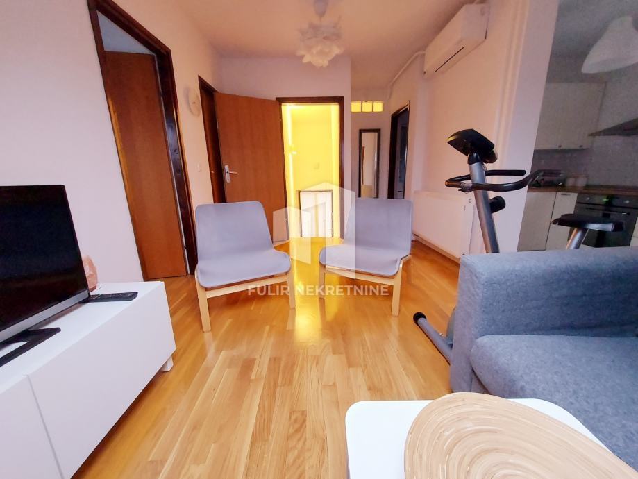 Iznajmljuje se trosobni stan s dvije spavaće sobe, dnevnim boravkom, kuhinjom s blagovaonicom, kupaonicom, balkonom i ulaznim hodnikom.