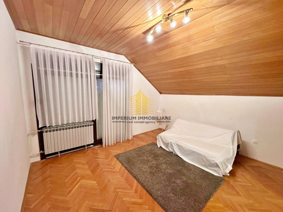 Za najam se nudi prostran 3,5-sobni stan površine 92 m2, smješten na drugom katu dvokatnice. Stan se nalazi na mirnoj lokaciji, koja nudi lijep pogled te obilje prirodnog svjetla zahvaljujući vrlo sunčanom položaju. Blizina prirode dodatno doprinosi kvaliteti života u ovom prostoru, čineći ga atraktivnim izborom za one koji traže mirno okruženje udaljeno od gradske vreve.