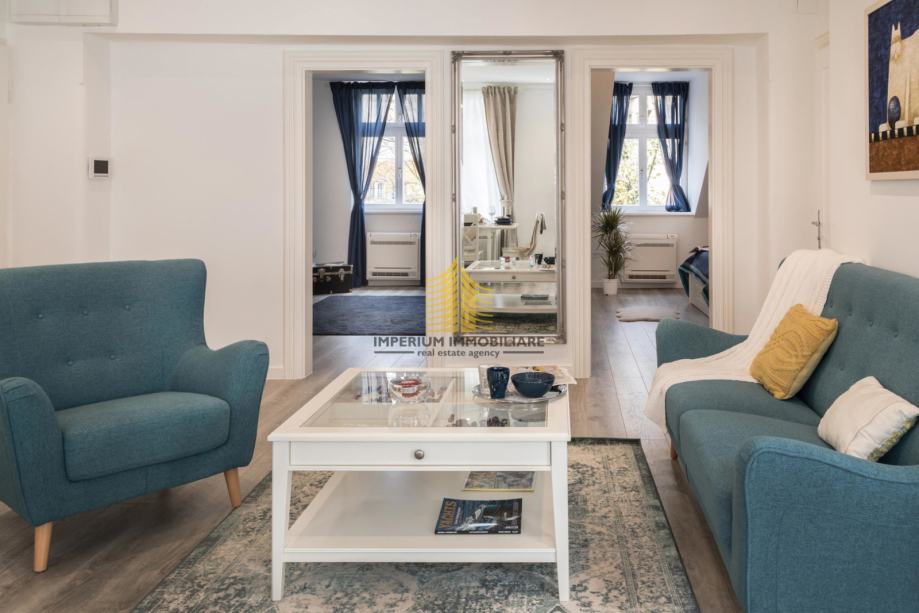 Ovaj 2,5-sobni stan nudi funkcionalan raspored s dvije spavaće sobe, a njegova sjeverna i južna orijentacija osigurava obilje prirodnog svjetla tijekom cijelog dana. Stan se ističe mirnom lokacijom, što ga čini idealnim izborom za one koji cijene privatnost i ugodan ambijent u povijesnom dijelu grada.