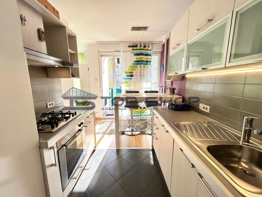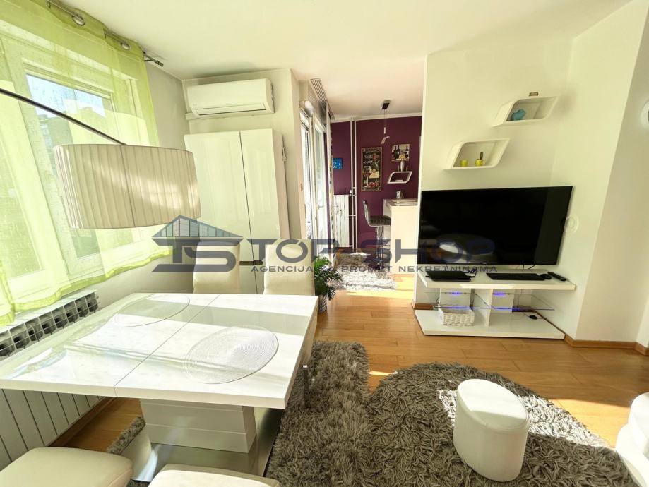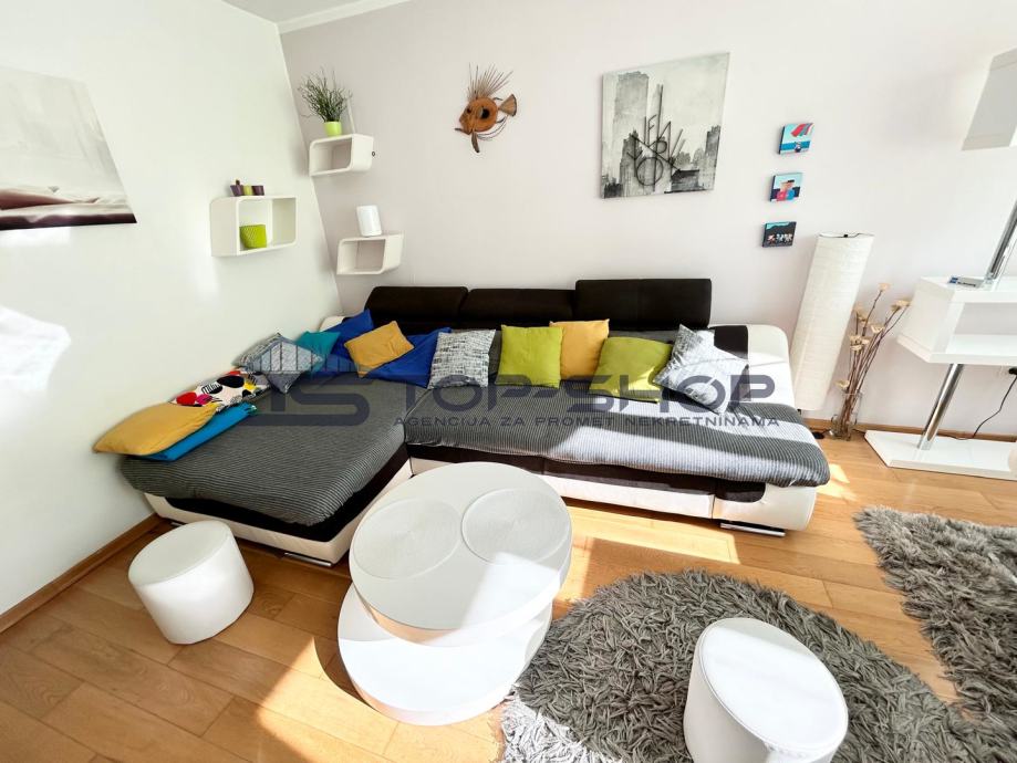 Stan se sastoji od jedne spavaće sobe, kuhinje i dnevnog boravka, kupaonice, izbe i hodnika. Dašak prirode pruža loggia. Sama zgrada je pozicionirana u samom centru naselja te je praktičan izbor za sve koji žele spoj urbanog i prirodnog načina života. Stan je adaptiran 2024. godine.