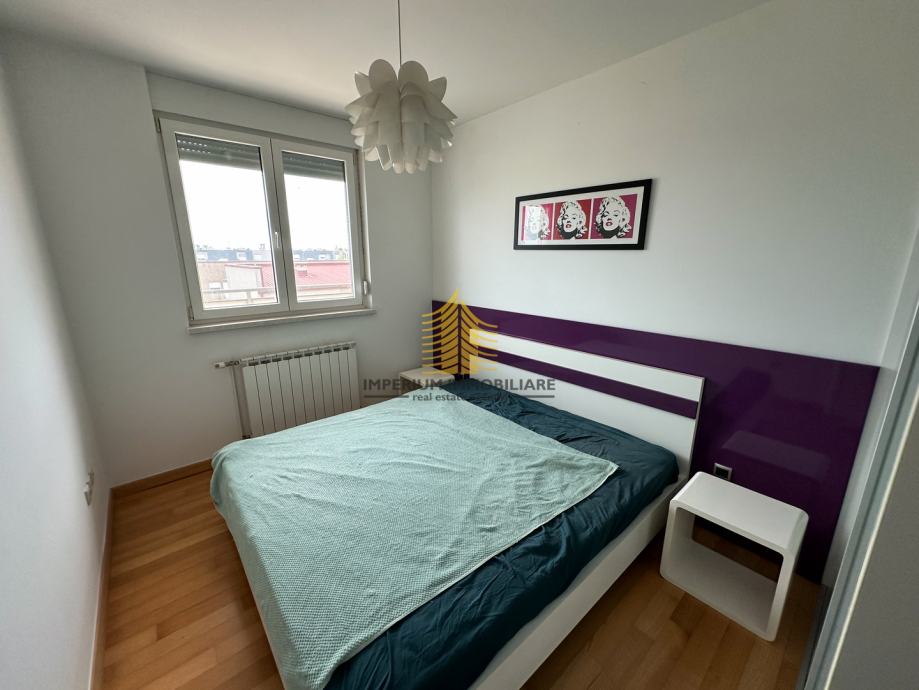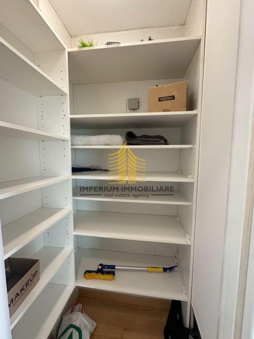 Interijer je opremljen kuhinjom s aparatima, perilicom posuđa, perilicom rublja, kadom, TV-om i krevetom, čime je stan spreman za useljenje bez potrebe za dodatnim ulaganjima.