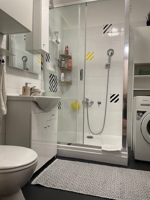 Opremljen je klima uređajem, perilicom za suđe, perilicom za rublje i portafonom.