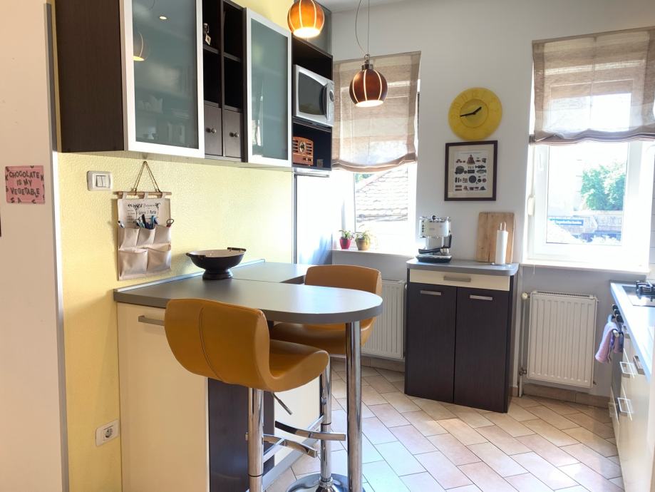 Trosoban stan na drugom katu, parking u dvorištu. Stan se sastoji od dvije sobe, kuhinje, kupaonice, dnevnog boravka i balkona. Odmah useljiv.