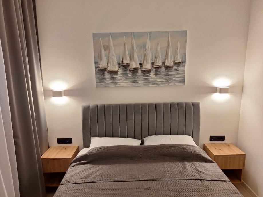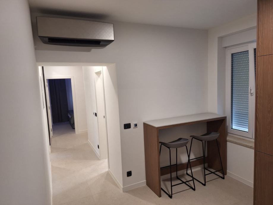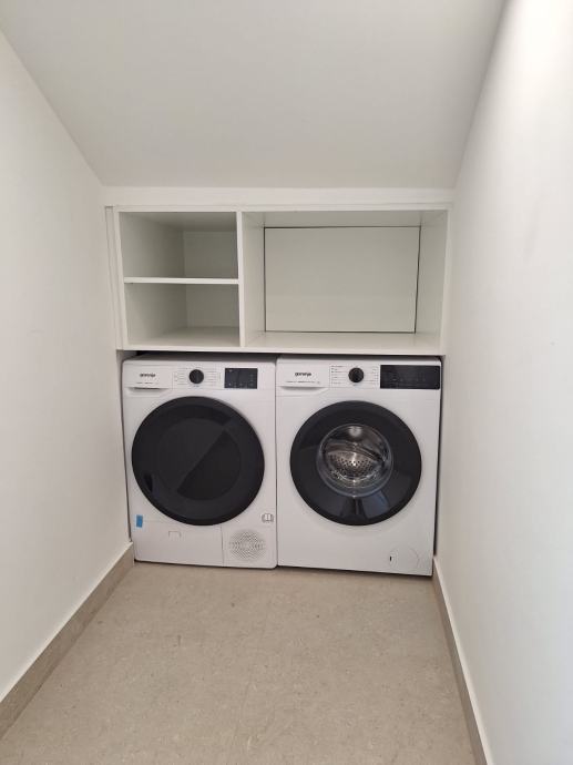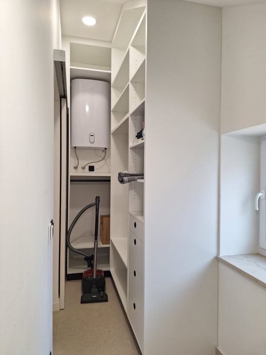 Sastoji se od hodnika,spavace sobe sa bracnim krevetom,kupatila,kuhinje sa svim aparatima,dnevnog boravka,blagavaonskog prostora te prostorije u kojoj se nalazi garderober,perilica i susilica rublja.Sve prostorije imaju podno el. grijanje,el.roletne i klima uredjaj.