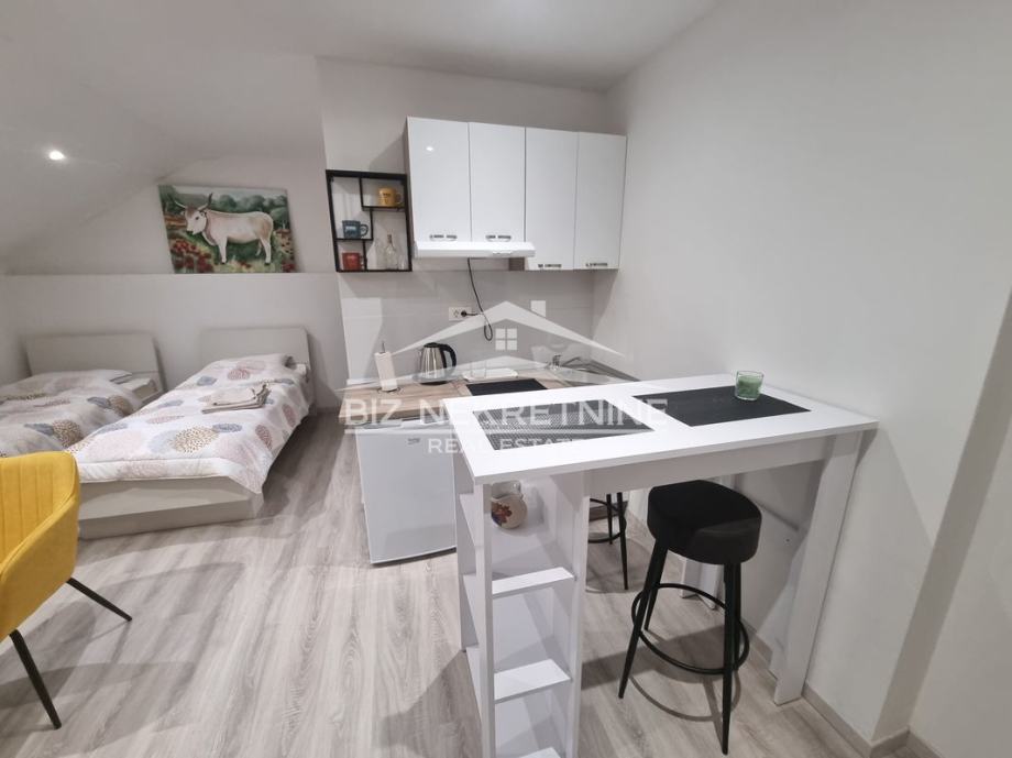 Garsonjera ima 25 m2, nalazi se na 1. katu, kompletno je namještena i opremljena.